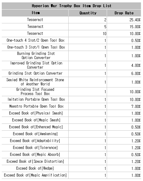 - Defeating Hyperion grants a Hyperion Loot Box, with a low chance to obtain a Lv. 1,250 ULT Selection Box.