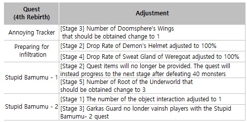 7. Tutorial (4th Rebirth) Improvement - Errors occurring during the 4th Rebirth quest progression have been fixed, and progression steps have been adjusted to improve leveling convenience up to Level 1250.