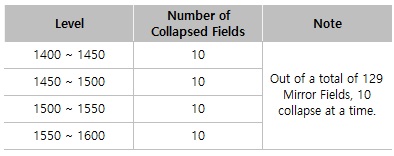 6. Mirror Field Collapse Level Expansion - The Mirror Field Collapse content has been expanded to Level 1400–1600. - The expanded collapse fields are added to and applied within the existing collapse field content.