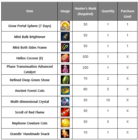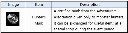 [Details] - The event token [Hunter’s Mark] drops when you hunt monsters during the event period. These coins can only be obtained from monsters that are within ±100 levels of your character (for characters between level 1 and 1999). > If your character is above level 1999, the monster must be within ±50 levels of your character. - [Hunter’s Mark] can be exchanged for event rewards at the Event Shop, which is located on the left side of the minimap. - The weekly drop limit for [Hunter’s Mark] is 100, and it resets every Monday at 00:00 (in-game time).