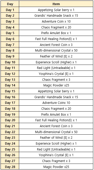 2. [Attendance Check Event] [Duration] 2026/03/15 After Maintenance ~ 2026/04/15 Before Maintenance - Attendance Check Event will be available for 28 days during the Event Period.