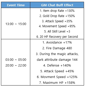 - For 2000+ Level characters, the hot time event will be applied as follows: 125% EXP / 200% Item Drop Boost
