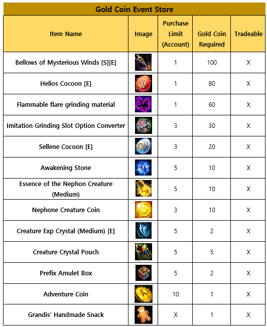 [Details] - When you hunt any monsters during the event period, you can obtain ‘Gold Coin’ with a certain probability. (It can only be obtained from monsters that are -100 level or higher than the character level) - “Gold Coin” can be traded with event rewards from Event Shop that is located right left to the minimap. - During the event period, some monsters will appear and be haunted by Golden Rabbitoh's energy (Haunted monsters will not appear from Earth of Confusion, Secret Dungeon, Boss Elimination, Raid, Trial Dungeon, Dimension Hub, Jar item, Altar, black market, raid, dungeon of hardship, Land of Chaos dungeon and prefix dealer.) - Monsters that are haunted by Golden Rabbito's Energy will have Golden Rabbitoh's HP bar and continuous effect. - Golden Coin will be dropped (100%) if the players hunt the monsters that is haunted by golden rabbitoh
